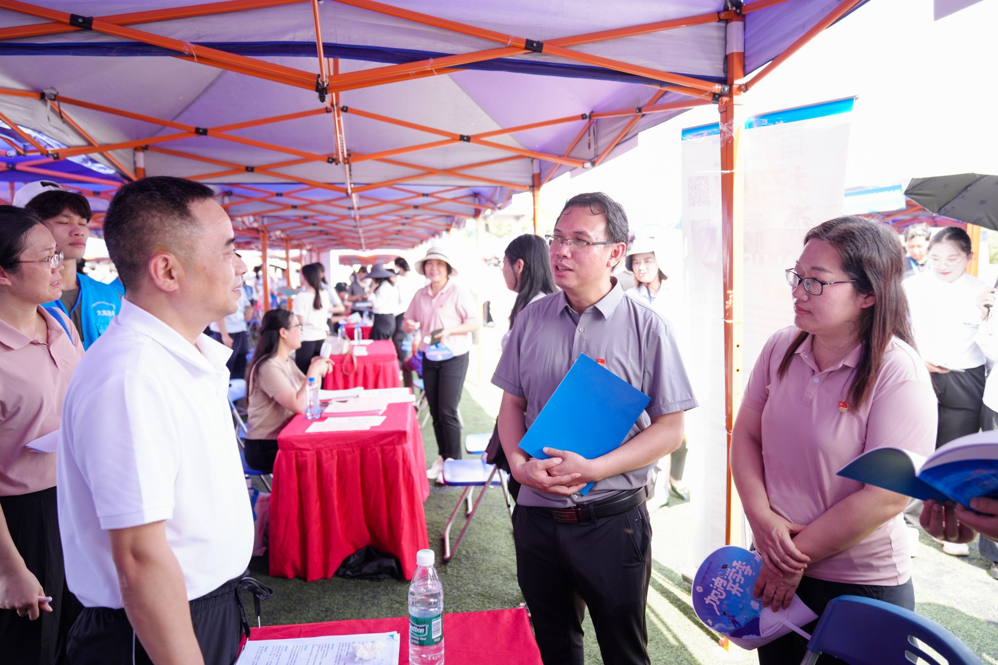 双选会现场,学校校长刘存香、党委副书记莫海燕、纪委书记邓文勇、副校长周涛、总会计师潘念萍,以及学校招就处和二级学院的负责人深入双选会现场,与用人单位就精准对接人才培养与企业需求等方面进行深入探讨。