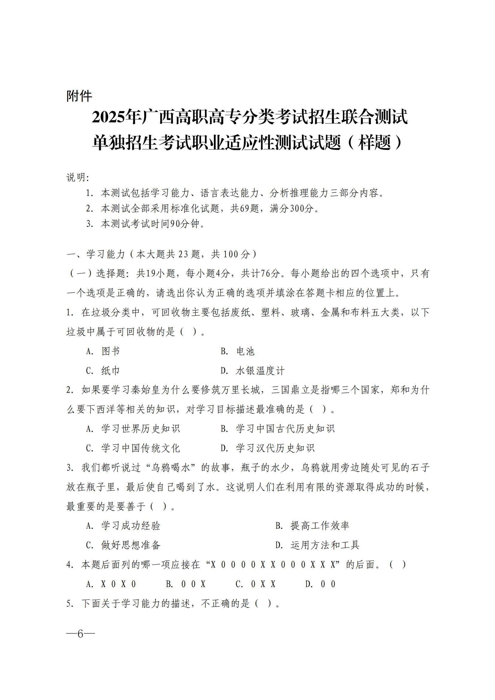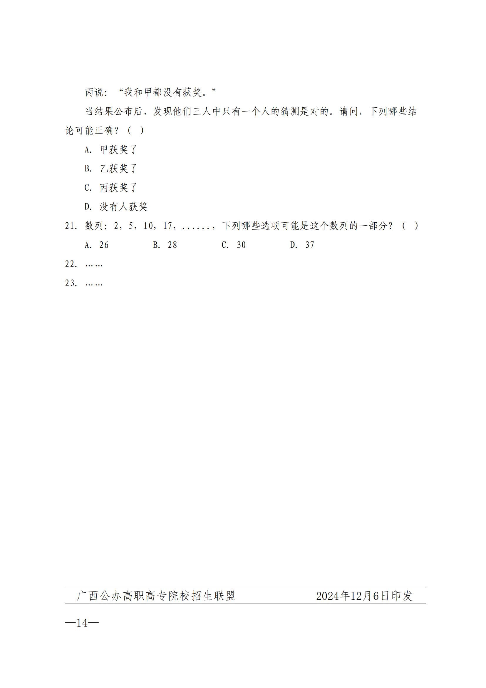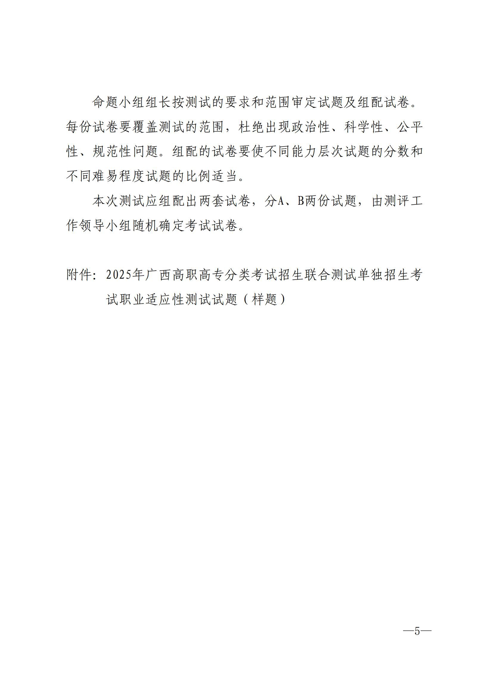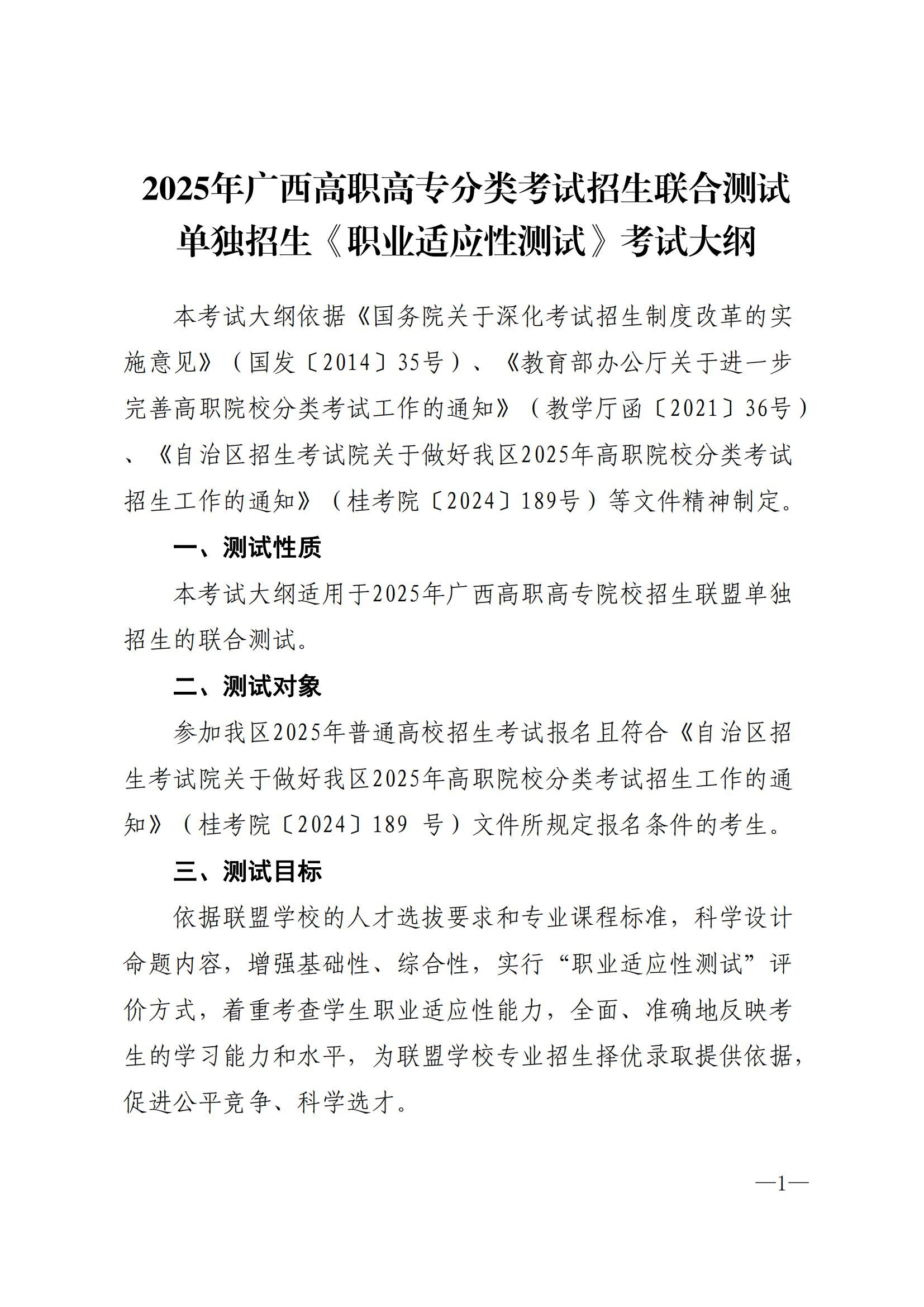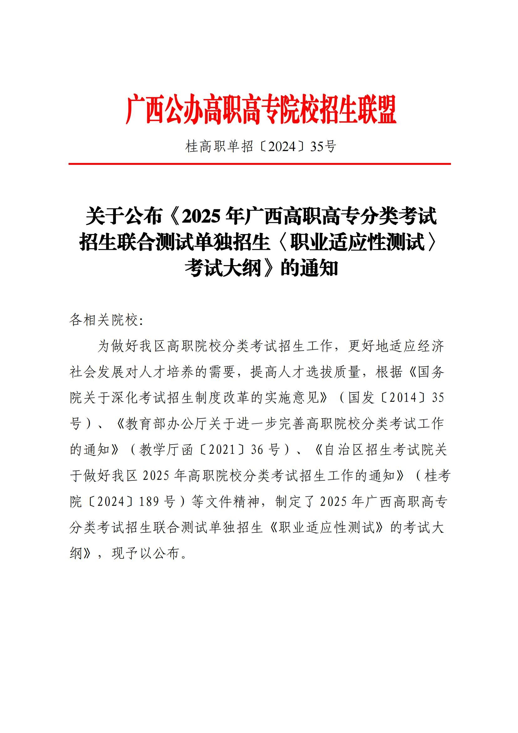 桂高职单招〔2024〕35号 关于公布《2025年广西高职高专分类考试招生联合测试单独招生〈职业适应性测试〉考试大纲》的通知.pdf
