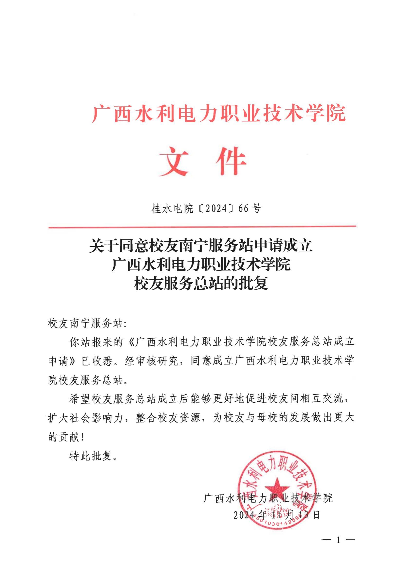 关于同意校友南宁服务站申请成立pp电子游戏平台官网校友服务总站的批复.pdf