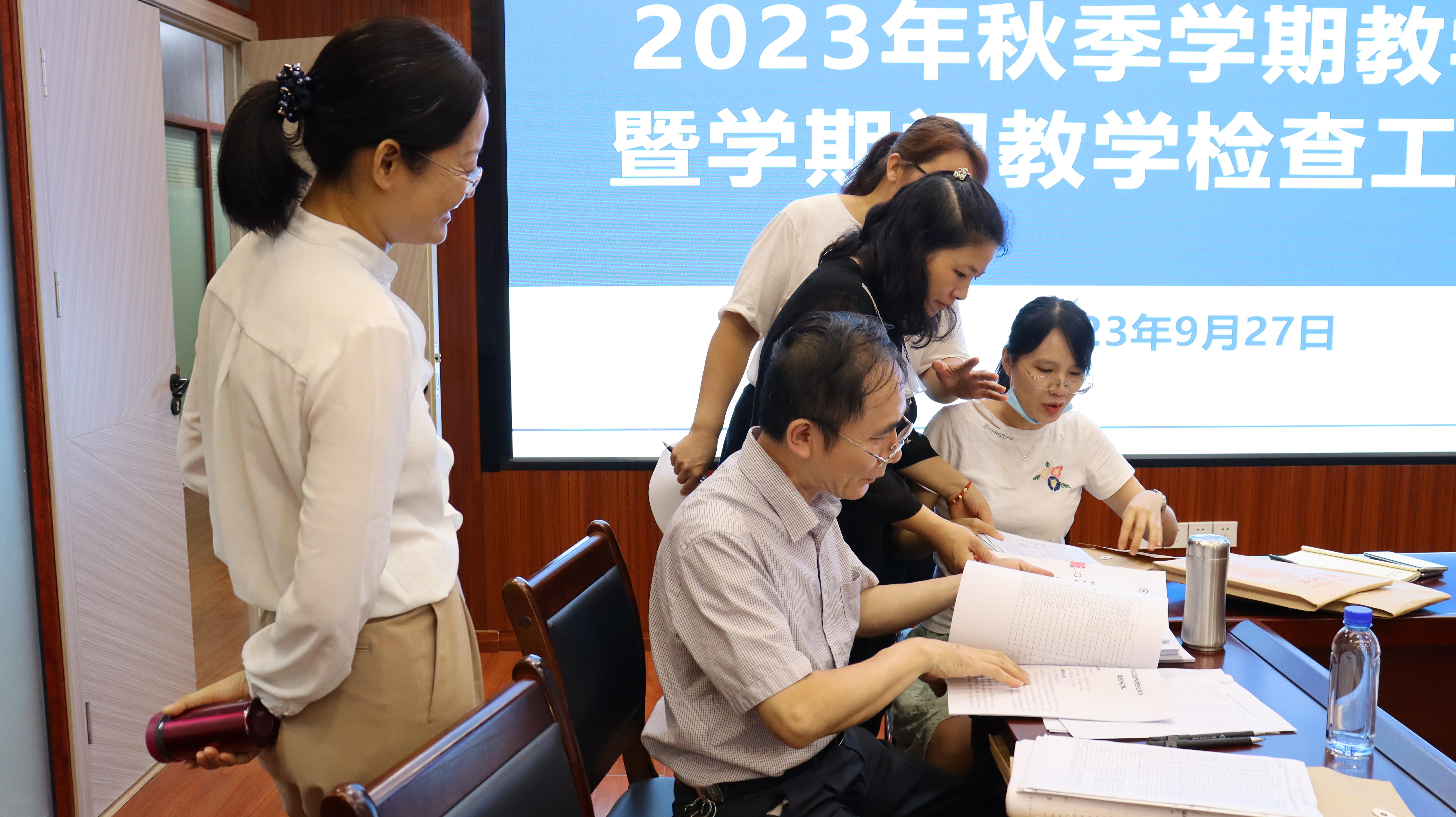 会上,质量管理办公室就2023年春季学期教学督导工作基本情况及发现的问题进行了汇报。随后,二级学院主管教学副院长和教学秘书组成的10个检查组对教学文件规范和完整度、试卷编制和批阅的完成情况等材料进行交叉检查。