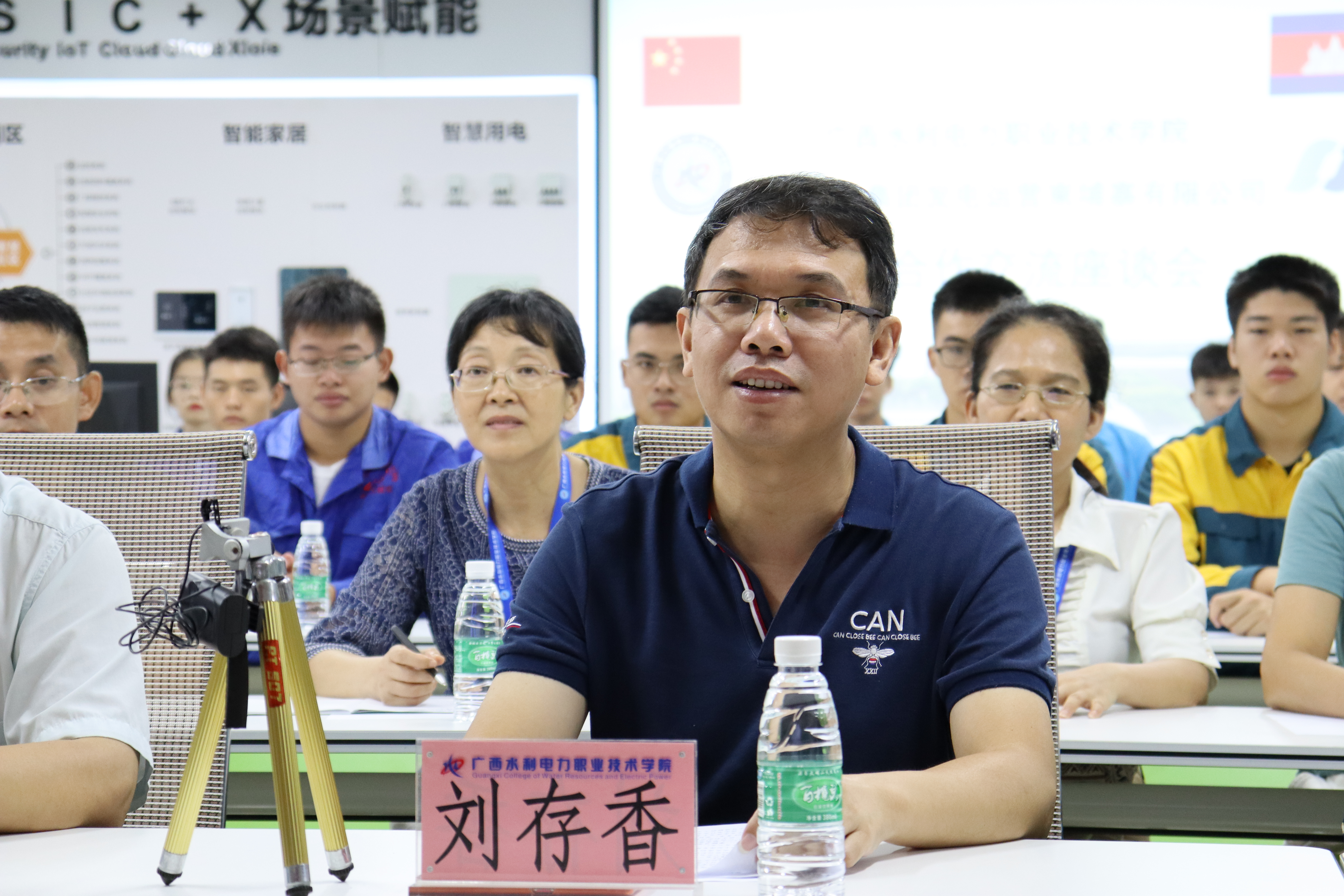 座谈会上,刘存香副院长在致辞时代表学院对华电运营柬埔寨公司参加本次交流活动的领导和员工表示诚挚欢迎,并充分肯定了校企双方多年来在人才培养、技能输出等方面的合作成效。他表示,在"十四五"事业发展规划新蓝图下,双方在校企协同育人、校企"双导师"互聘、中柬两地技术技能人才培养等方面,将继续响应国家“一带一路”倡议,聚力东盟,协同校企优质资源,服务柬埔寨水电事业发展。